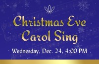 Jesus descended to earthto give you life.Let's praise Him together!Join us on December 24 at 4:00 PM for our Christmas Eve Carol Sing! Learn More